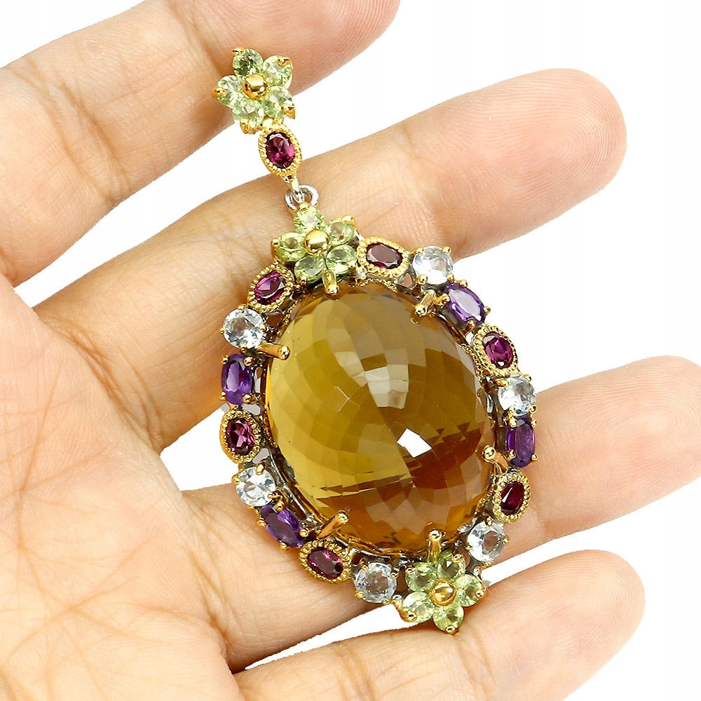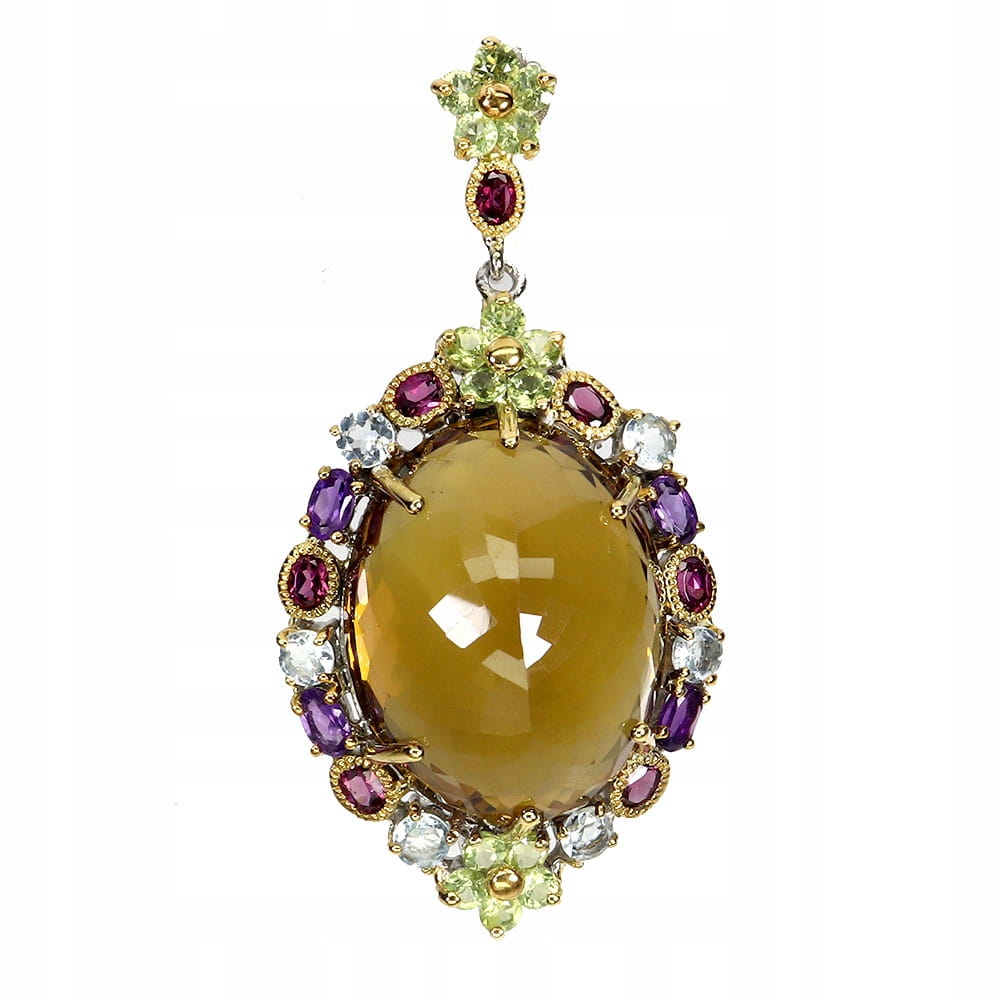 Srebrny zjawiskowy wisiorek 80ct cytryn oliwiny granaty ametysty naturalne