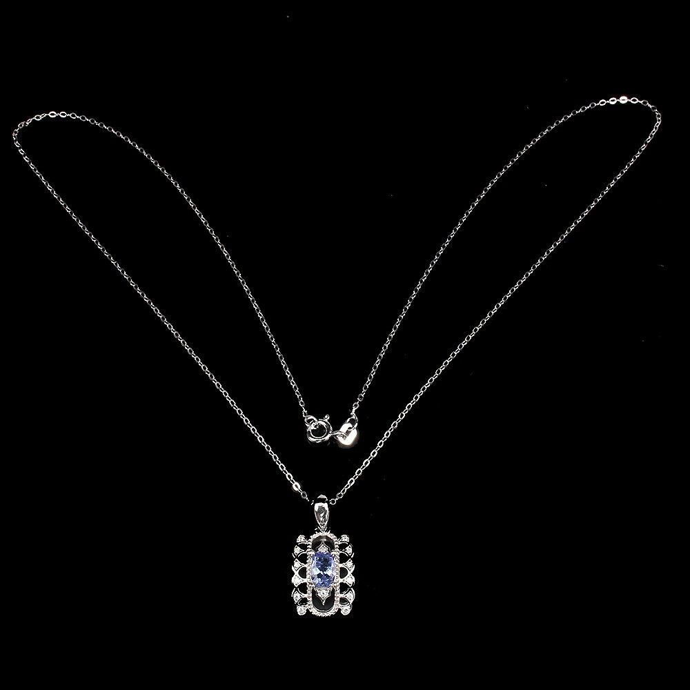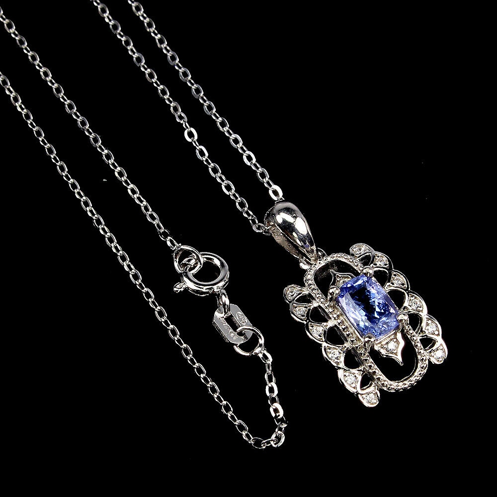 Oferujemy Państwu nowy, pozłacany 14K białym złotem, srebrny - próba 925 naszyjnik z naturalnym tanzanitem i cyrkoniami.
