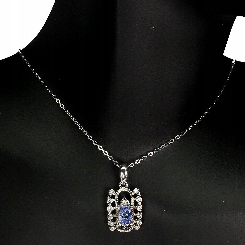 Tanzanity naturalny naszyjnik srebrny cyrkonie 16