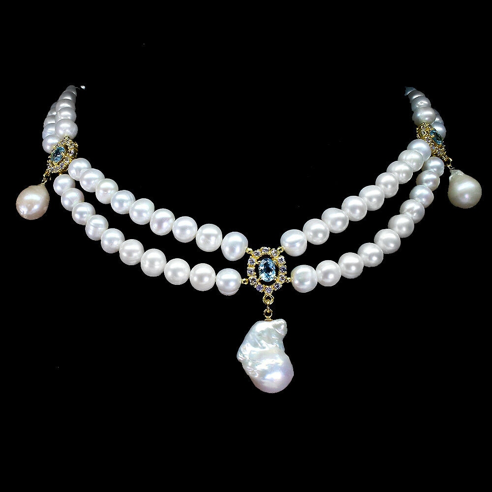 Tanzanity perły topazy naturalny naszyjnik srebrny
