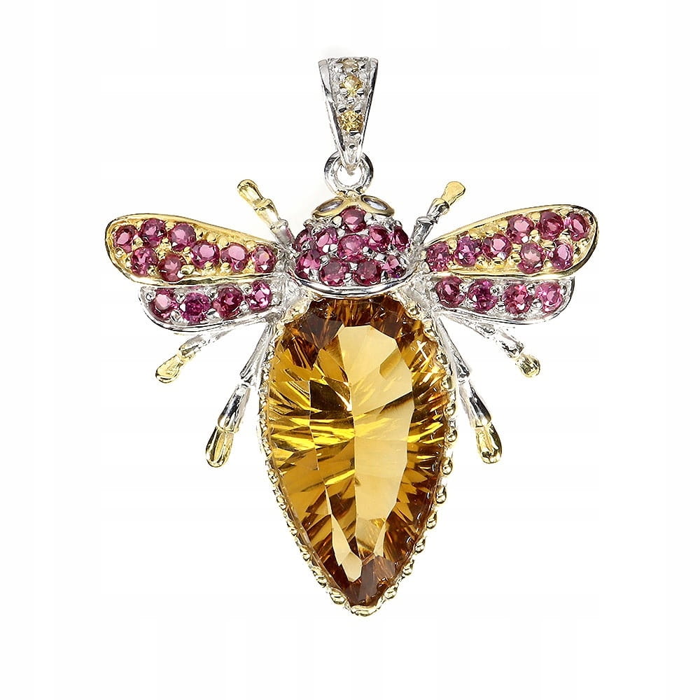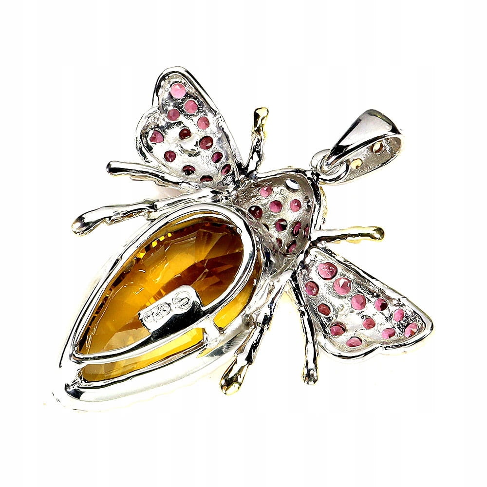 Wisiorek cytryn 30ct naturalne granaty szafiry tanzanit pszczoła 925