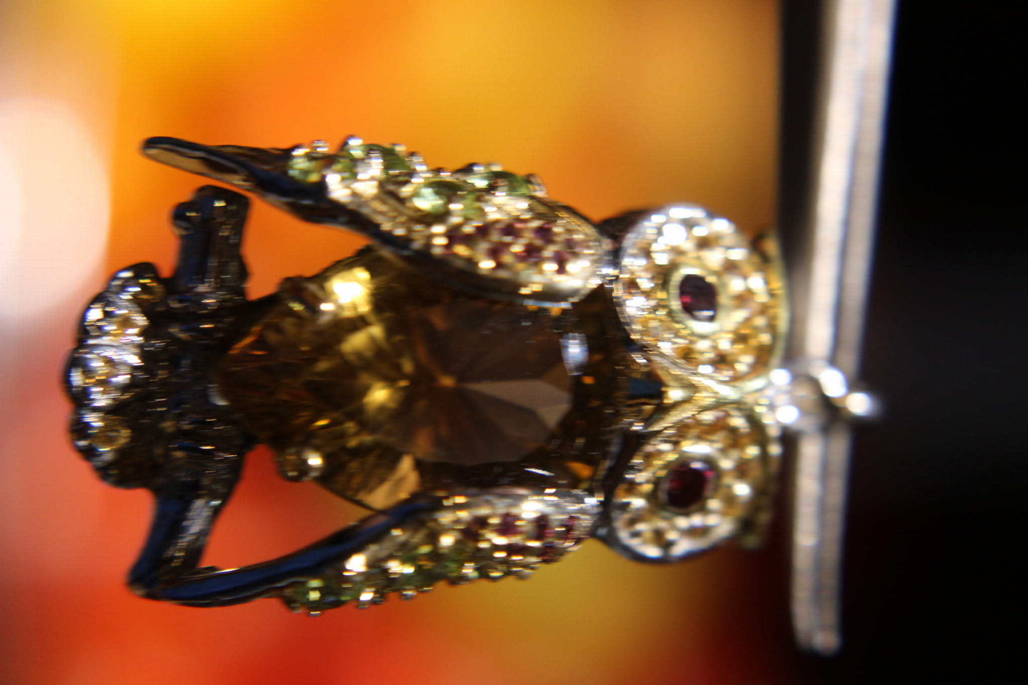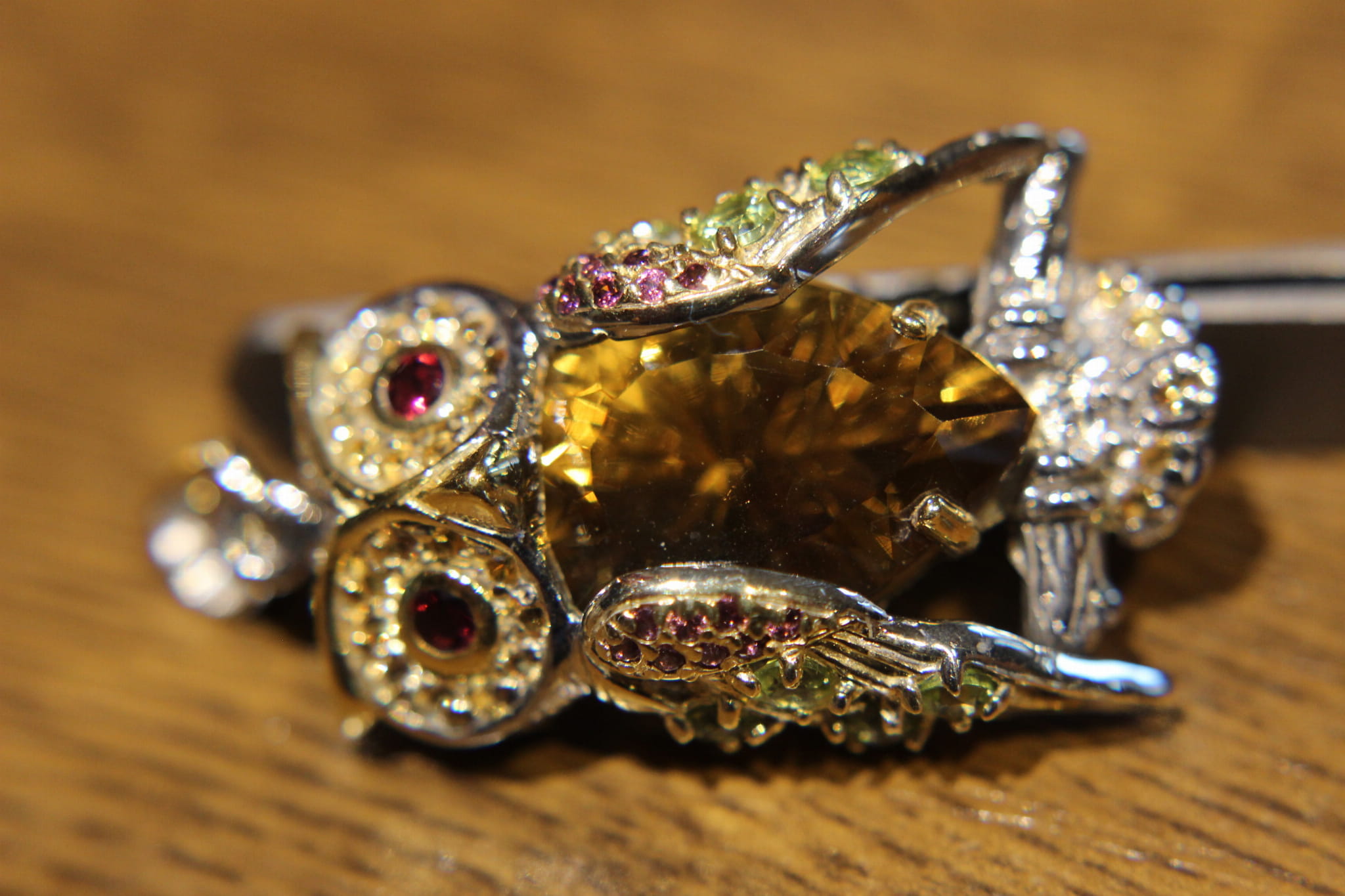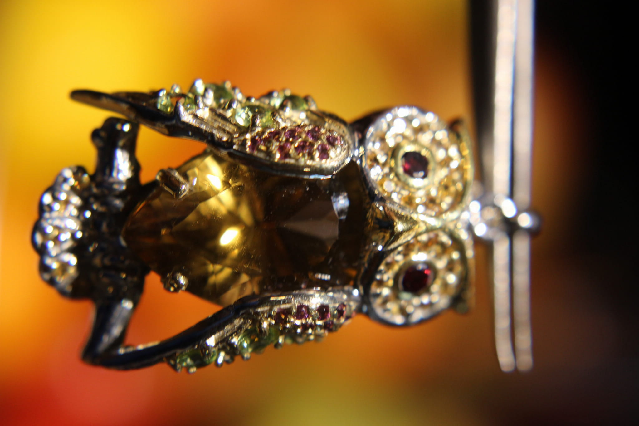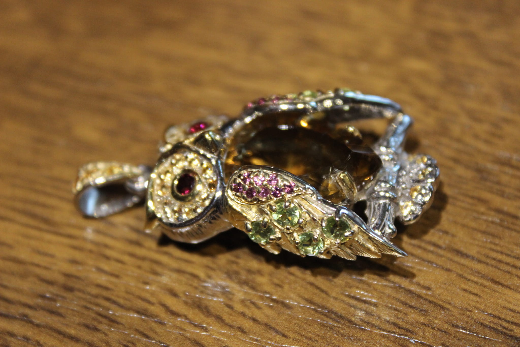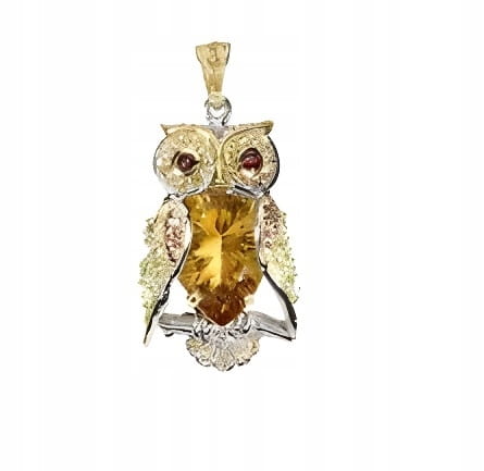 Wisiorek sowa 20ct cytryn naturalne oliwiny granaty szafiry srebro 925