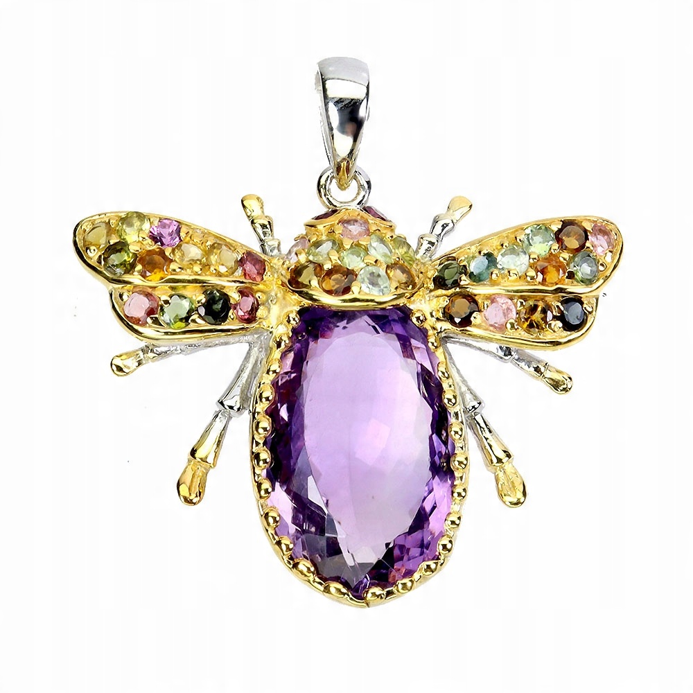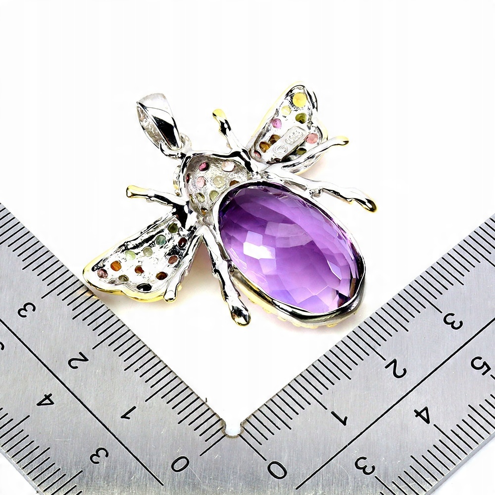 Wisiorek srebrny 925 naturalny 34ct ametyst granaty turmaliny żuk