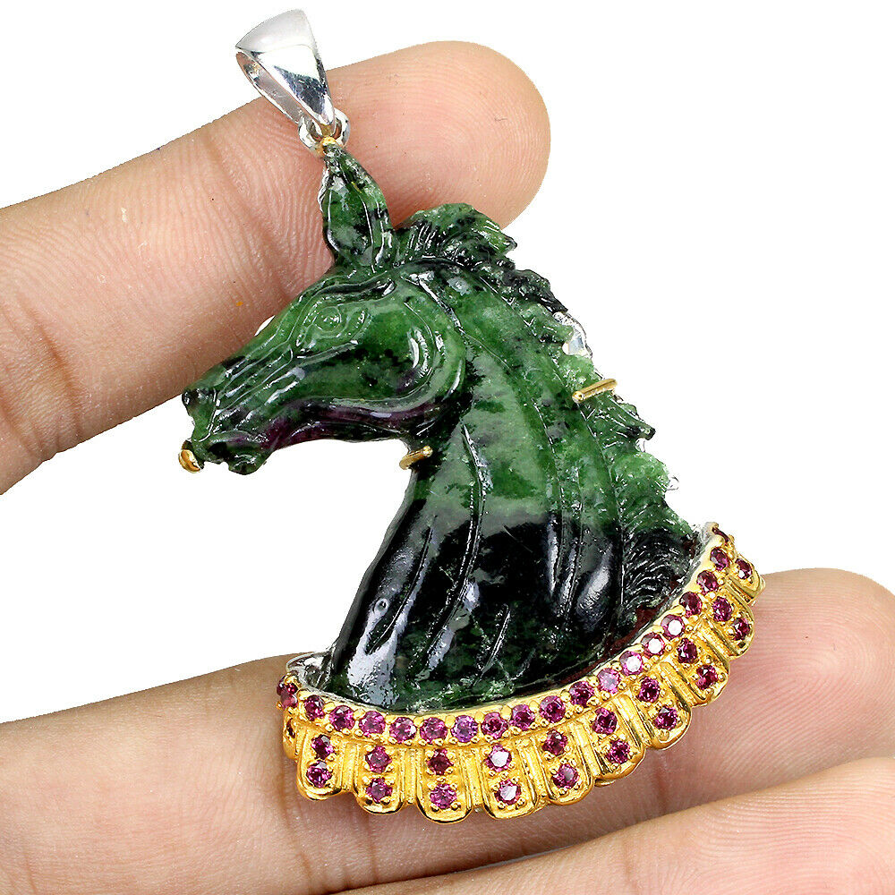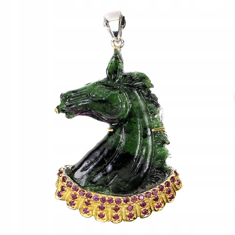 Wisiorek srebro naturalne 81.68ct rubin zoisyt koń