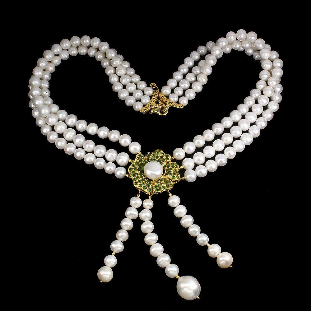Oferujemy Państwu nowy, pozłacany 14K żółtym złotem, srebrny - próba 925 naszyjnik z naturalnymi perłami i diopsydami.