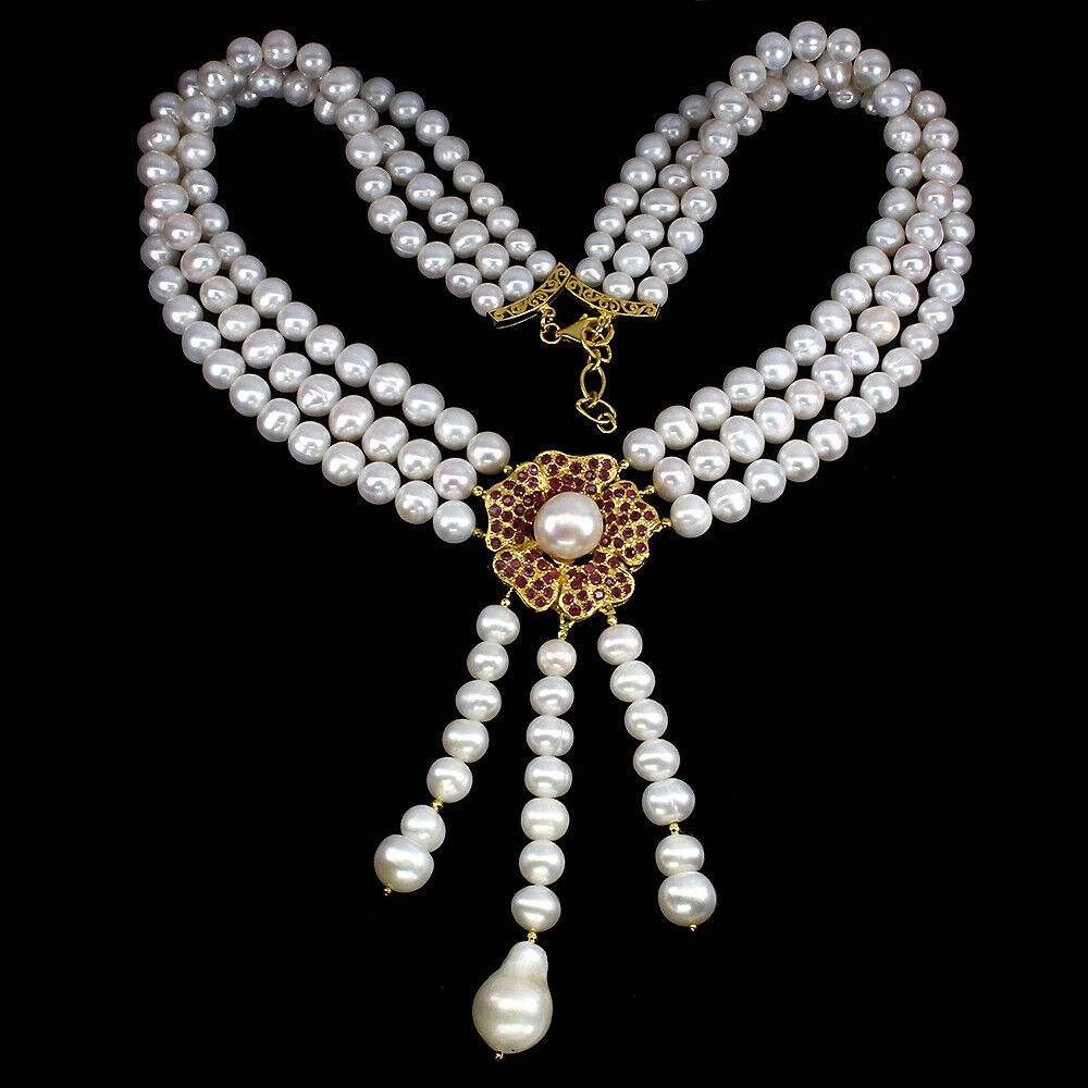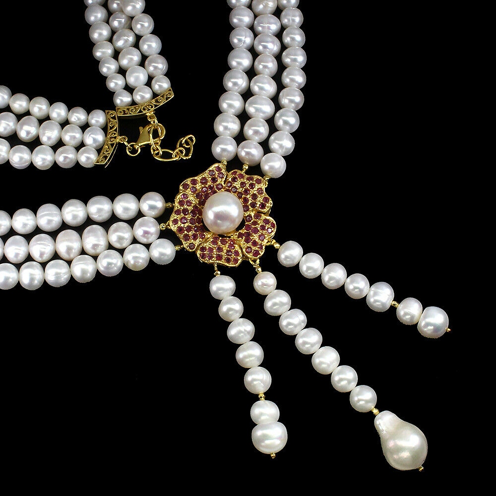 Oferujemy Państwu nowy, pozłacany 14K żółtym złotem, srebrny - próba 925 naszyjnik z naturalnymi perłami i rubinami.